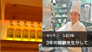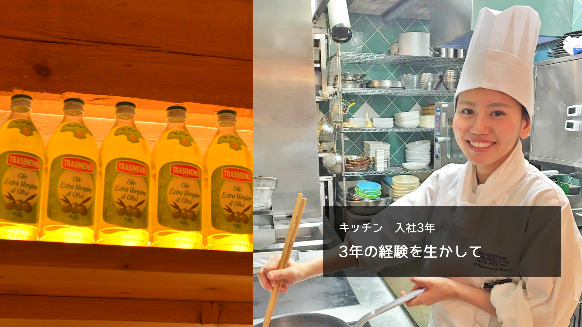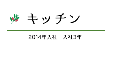 3年の経験を生かして、チーフがいない時には責任者をしています。シフトや食材管理も自分の仕事です。徐々に仕事をするキャパシティーが上がってきている感じを目の当たりに。周りからも頼られるようになり、自分が必要とされていると実感してます。これからもチーフをしっかり支えていきます。